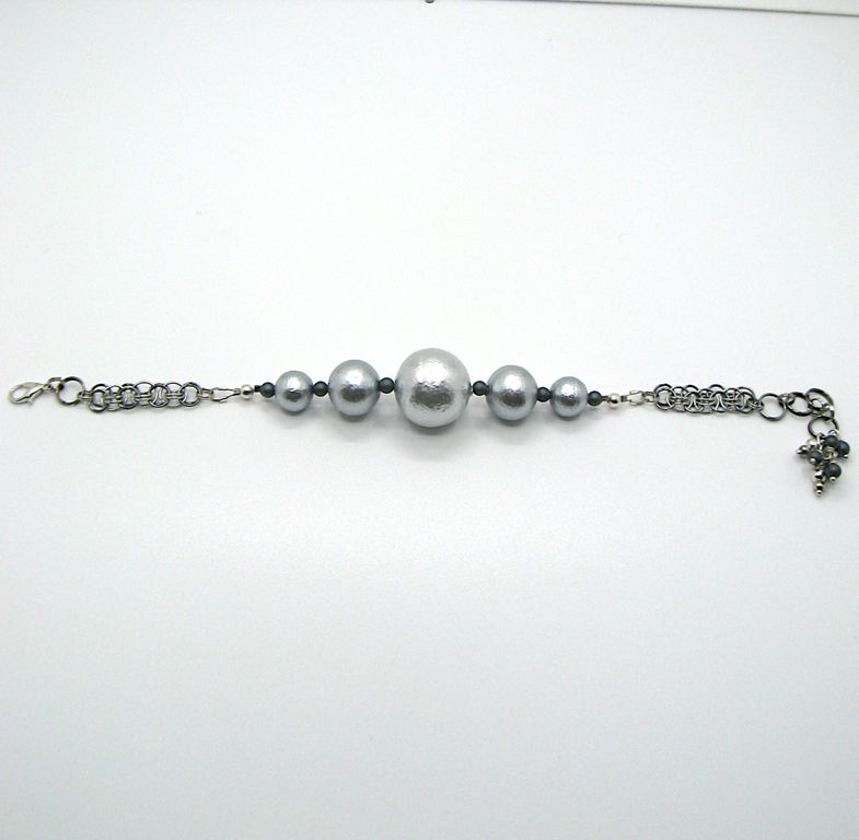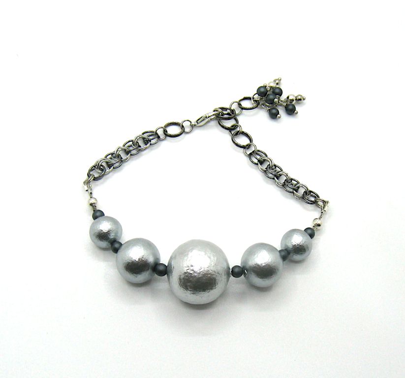 Браслет "Нежность" с хлопковым жемчугом серебристо-серого цвета