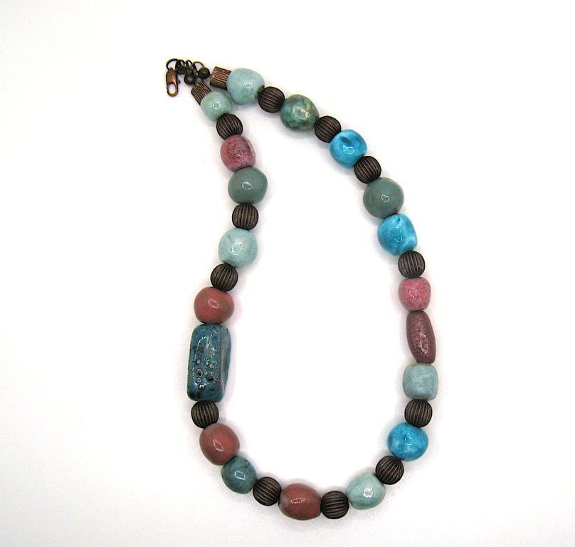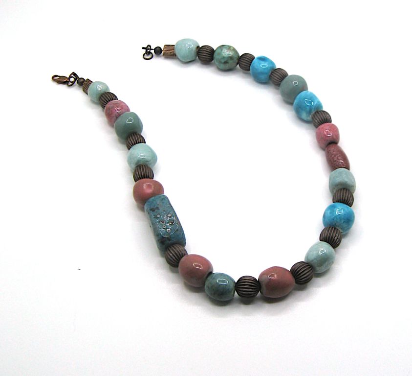 ❖ Восхитительные бусы в стихе бохо! Каждая керамическая бусина - авторская ручная работа. Дополнены красивыми металлическими бусина цвета меди.