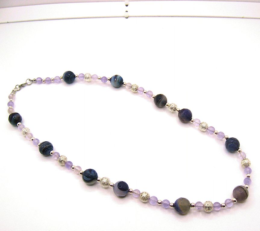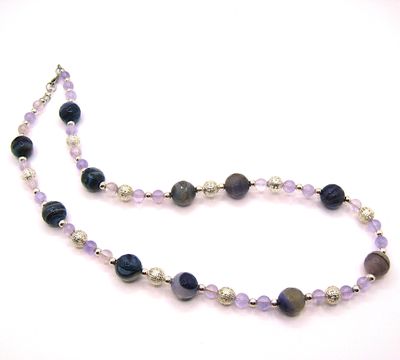 ❖ Бусы из полосатого агата и аметрина чудесного оттенка. Дополнен ажурными металлическими бусинами.