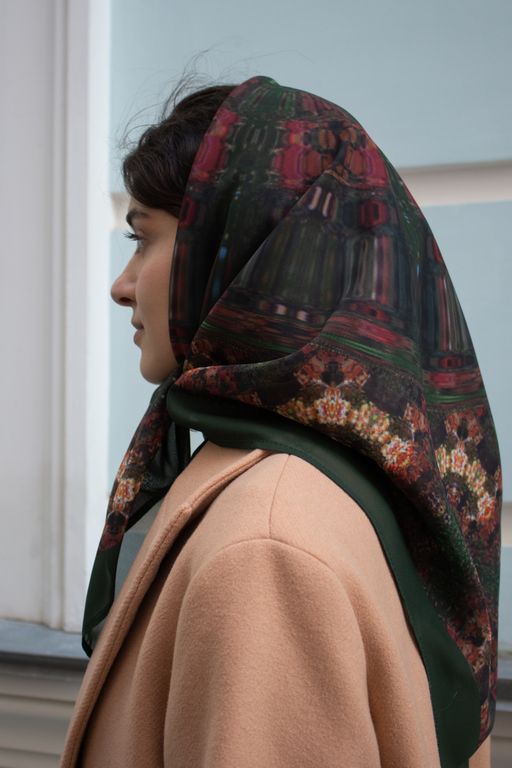 Дизайнерский платок "Летний вечер", принт по мотивам авторского цифрового коллажа, 90х90 см