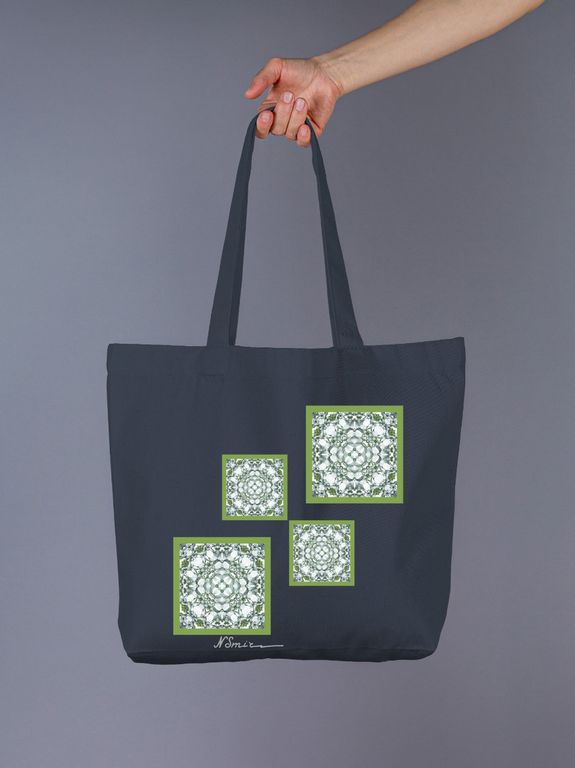 ❖ Красивая модная сумка-шоппер из хлопковой саржи темно-серого цвета с принтом по мотивам цифрового коллажа "Сказки леса" с подписью автора - Наталии Смирновой (NSmir).