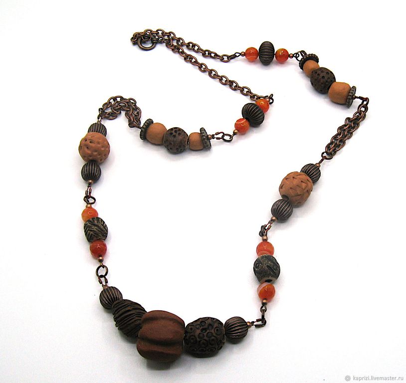 ❖ Эффектные длинные бусы (79 см) с авторской керамикой и натуральным рыжим агатом — стильное и самобытное украшение для вашего яркого образа.