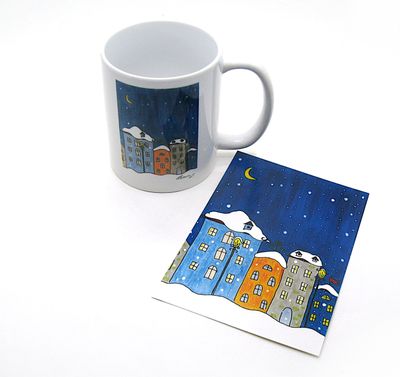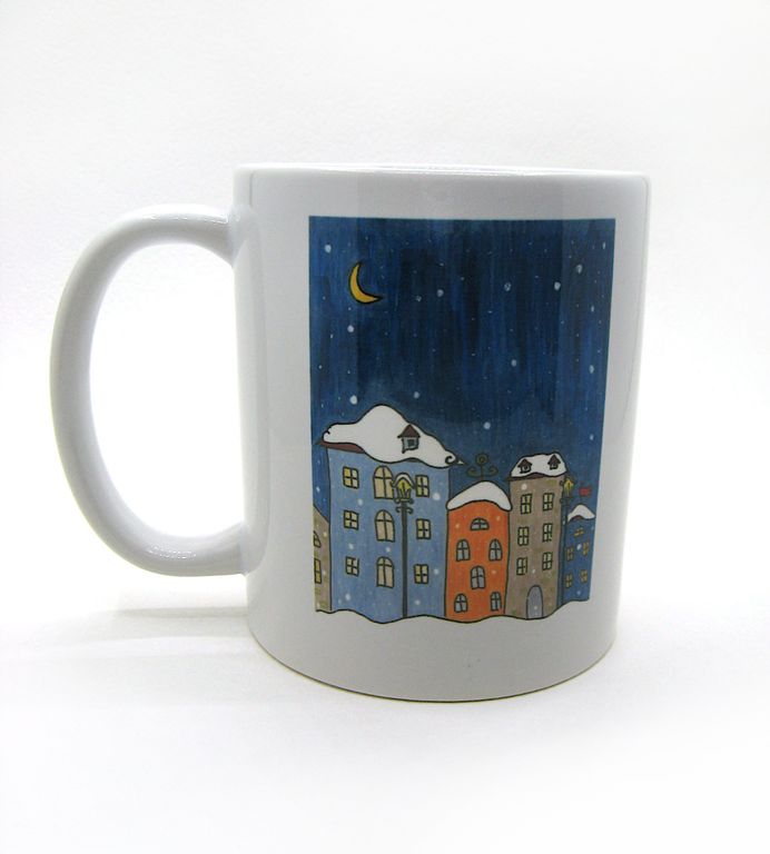 "Домики", кружка с фотопечатью авторского рисунка, 300 мл