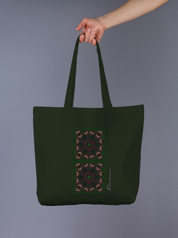 ❖ Эко-сумка - шоппер из темно-зеленой плотной саржи с авторским принтом "Летний вечер" от дизайнера Наталии Смирновой. Лимитированная коллекция, сумка с подписью автора.