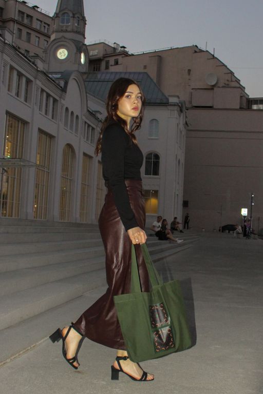 Эко-шоппер "Летний вечер" из темно-зеленой саржи