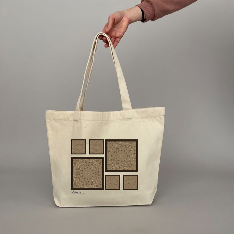 ❖ Нежная сумка-шоппер из саржи светло-бежевого цвета. Принт выполнен по мотивам цифрового коллажа "Осеннее волшебство" от Наталии Смирновой (NSmir). Сумка из лимитированной коллекции с подписью автора.