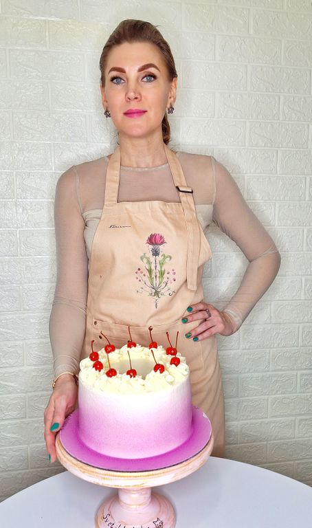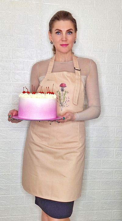 ❖ Стильный фартук для кухни и работы из натуральной светлой саржи с авторским рисунком из коллекции "Чертополох".