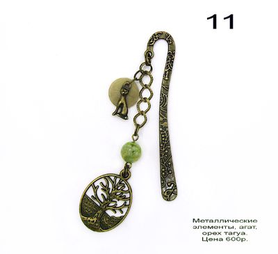 ❖ Красивая металлическая закладка для книги из лимитированной коллекции "Приключения котёнка Алекса"; подвеска на крупных звеньях цепочки завершается оригинальным "лесным медальоном", а бусины мшисто-зелёного агата и миниатюрный диск ореха тагуа придают всей композиции ощущение чего-то родного, природного, тёплого...