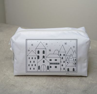 ❖ Авторский рисунок зимнего города на большой удобной косметичке - лимитированная коллекция "Город" от дизайнера Наталии Смирновой.