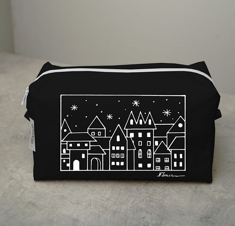 Косметичка черная с авторским рисунком, коллекция "Город"