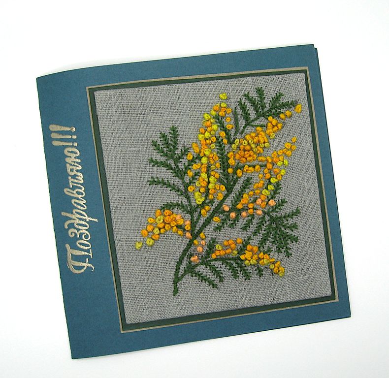 ❖ Поздравительная открытка с вышивкой Мимоза станет прекрасным дополнением к подарку или запоминающимся сувениром. Вышитые открытки - это теплые воспоминания, которые хранят.