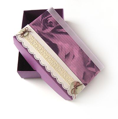 ❖ Глубокие оттенки ароматных цветов смотрятся нарядно и создают настроение праздника, дарят то желанное чувство предвкушения чудес. А нежное скрап-кружево на крышке коробочки добавляет флёра нежности и романтики.