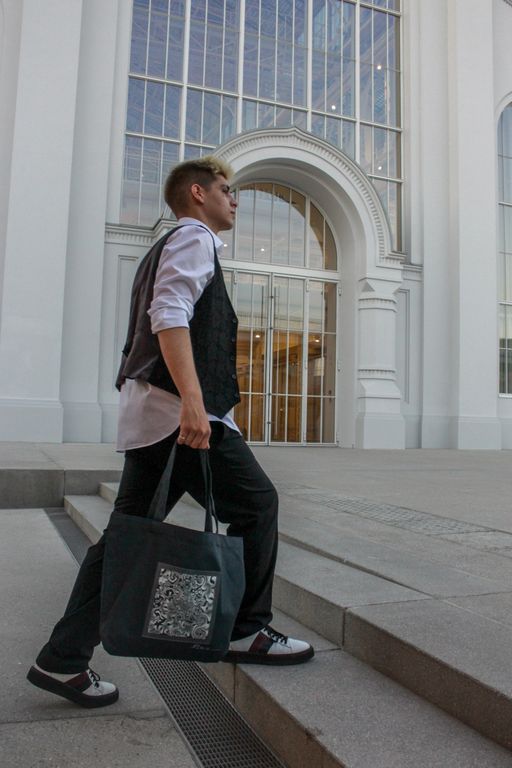 ❖ Красивая эко-сумка - шоппер из темно-серой саржи с авторским принтом по мотивам цифрового коллажа "Магия" от дизайнера Наталии Смирновой с подписью автора. Стильный и модный аксессуар!