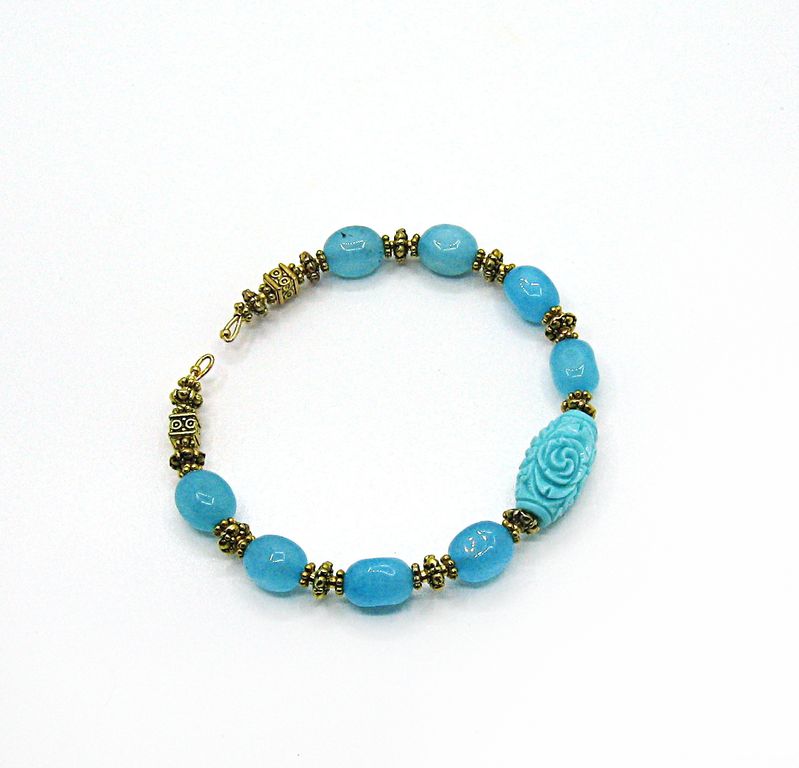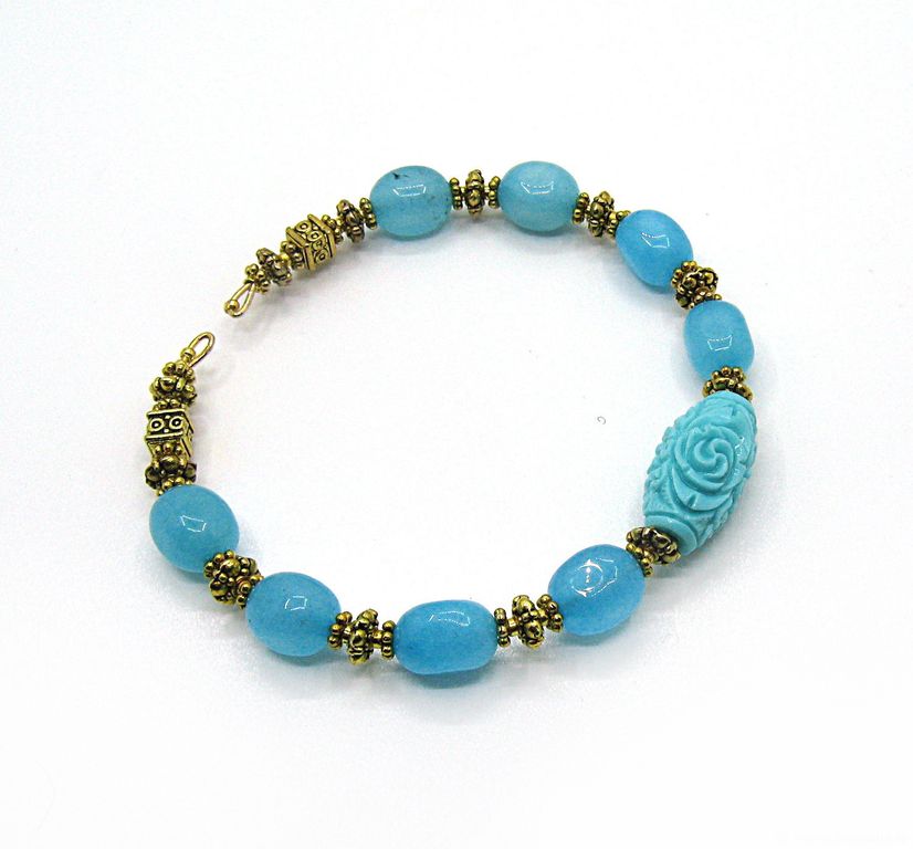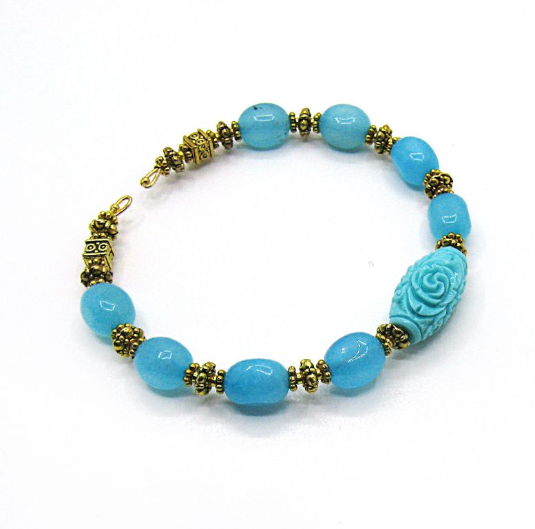 "Восточная фантазия". Браслет из голубых бусин кварца и коралла