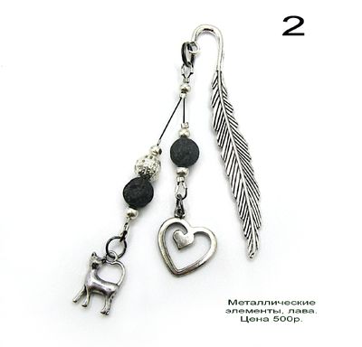 ❖ Красивая книжная закладка из серебристой металлической фурнитуры с подвижными подвесками: здесь и чёрные бусины настоящей лавы (маленький намёк на космические приключения), и большое сердце (как символ доброты и храбрости), и очаровательный котёнок (главный герой серии сказок Юлии Лавряшиной).
