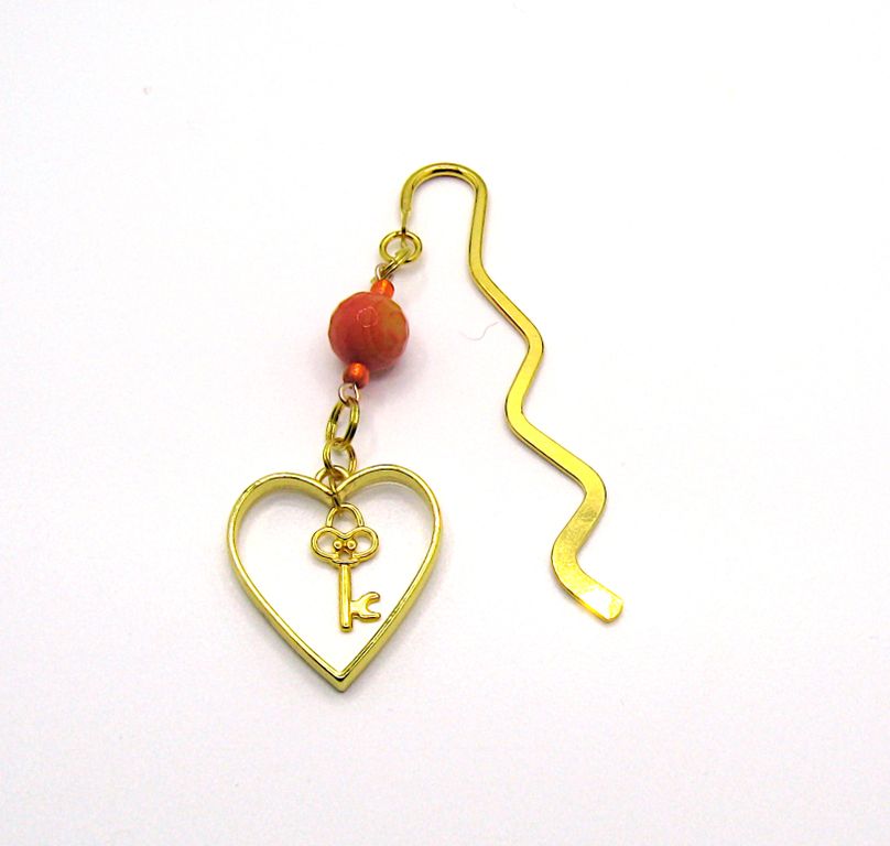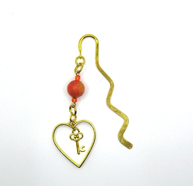 ❖ Закладка с агатом "Ключ от сердца" может стать очень символичным подарком. Красивые подвески, бисер и оранжевый агат. Удобная основа длиной 8,5 см.