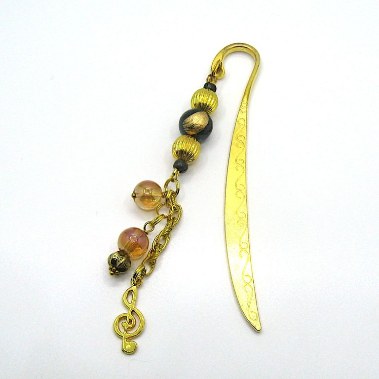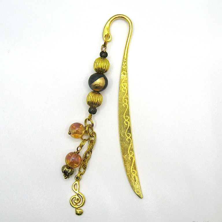 ❖ Закладка "Мелодия"также декорирована чудесной подвеской, очень красивыми металлическими бусинами и изысканной, сложной по плетению цепочкой.
