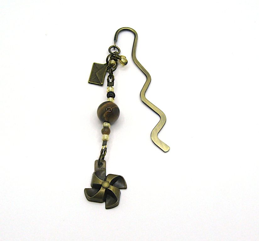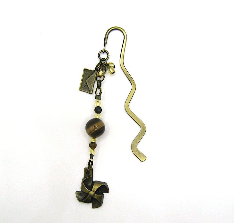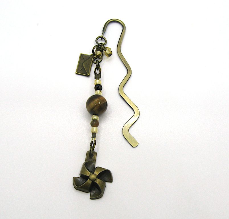❖ Закладка украшена интересными подарочными подвесками и бусинами тигрового глаза, коричневого агата и бисером. Длина основы 8,5 см.