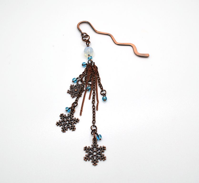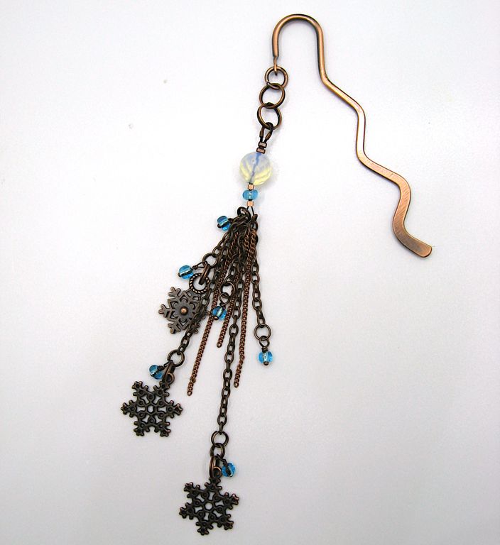 ❖ Снегопад... вихрь снежинок и мерцание... Все это в данной закладке: подвески-снежинки, движение тонких цепочек, мерцание бисера и опала. Наслаждаемся зимой!