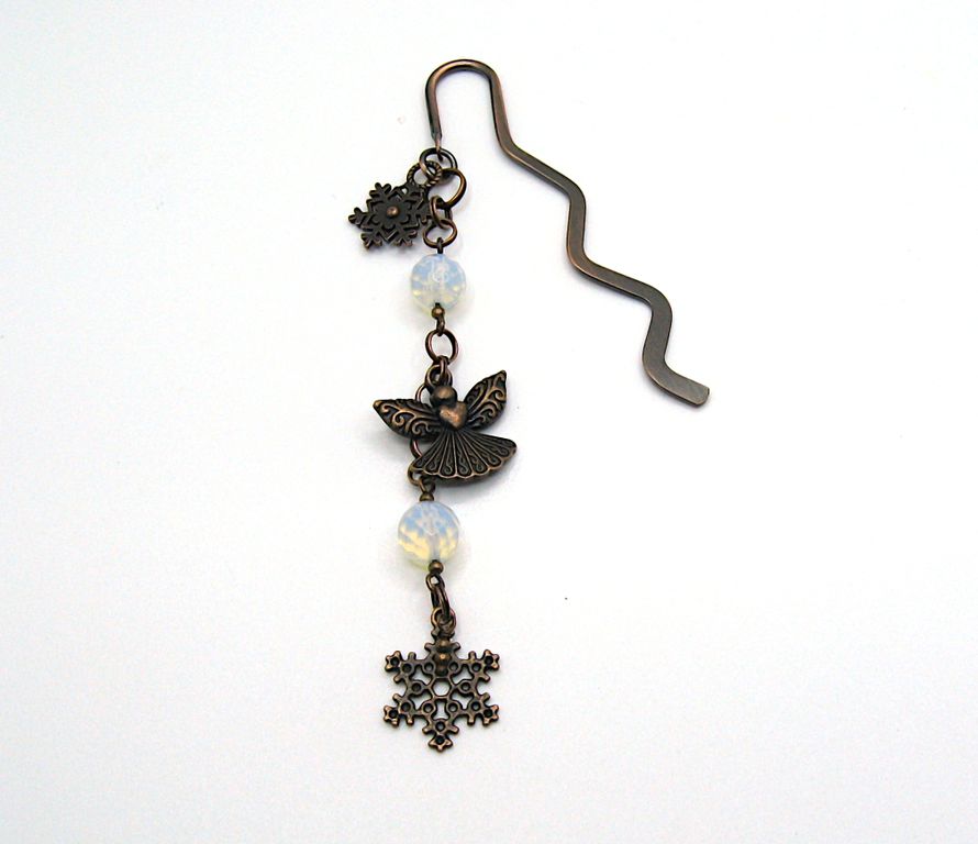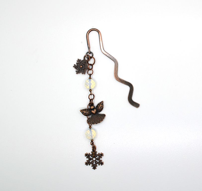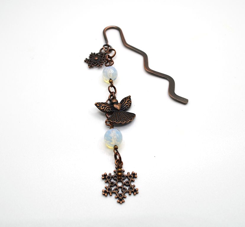 ❖ Закладка с удобной основой (8,5 см), красивыми опалами (камни синтетические) и нежными подвесками.