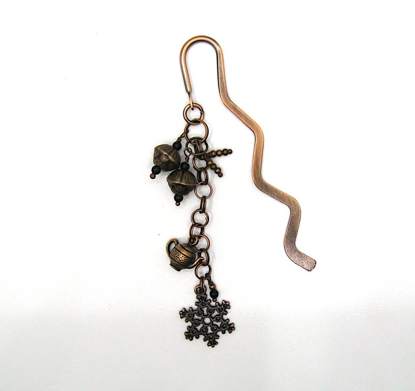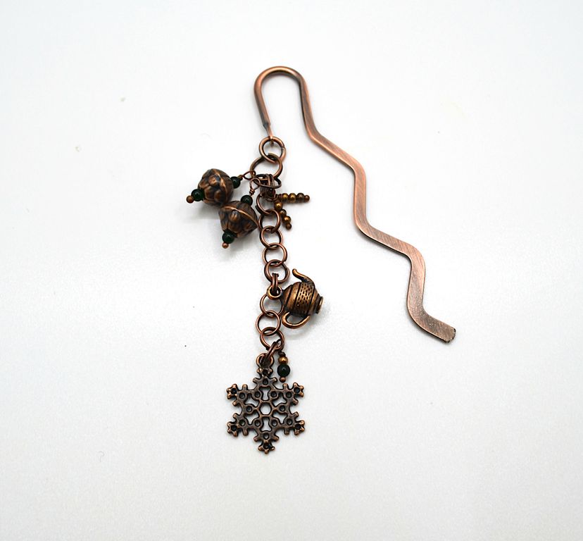❖ Зимний чай и хорошая книга - это всегда уютно! Добавит настроения красивая авторская закладка с зеленым авантюрином и интересными подвесками.